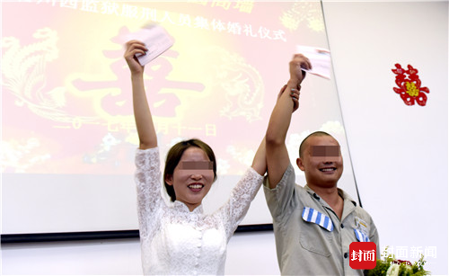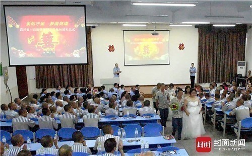 没有华丽的舞台,没有繁杂的流程、没有太多亲友的见证、甚至新郎连西装也只能以一身囚服代替。 8月11日早上10点,随着《婚礼进行曲》在川西监狱里奏响,一场特别的婚礼拉开了帷幕。