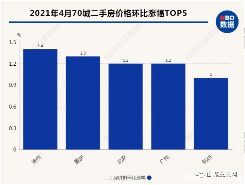 值得注意的是, 重庆新房环比上涨1.4%,领涨70城,二手房环比上涨1.3%,仅次于徐州的1.4%的环比涨幅,居第二位置。与3月相比,重庆新房和二手房价格涨幅均扩大0.5个百分点。