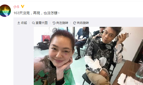 凤凰娱乐讯 第27届台湾金曲奖颁奖典礼于6月25日在台北小巨蛋举行,《康熙来了》(视频)结束后,小S与蔡康永在金曲奖红毯上再度合体。小S微博晒出后台与蔡康永合影,配文:“163天没见,再见,也没怎样。”