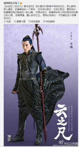 近期,改编自单机游戏《仙剑奇侠传五》的电视剧《仙剑云之凡》正在热播,郑元畅饰演的龙幽也是二次元气质十足。英气十足的长相,搭配蓝色的服装和长发,其造型与游戏中的龙幽相似度极高。