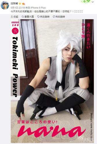 汪东城也是热衷二次元的代表性“小鲜肉”。从小狐丸到圣斗士星矢,甚至还有粉丝留言希望他cos(动漫角色装扮)朱利乌斯•维斯康提等。