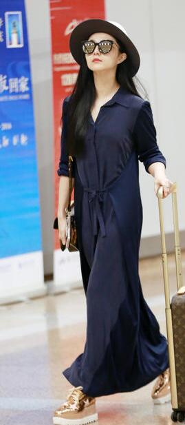 凤凰娱乐讯 9月11日,范冰冰参加完第41届多伦多国际电影节后回京现身首都机场,在机场范冰冰一身蓝色长裙抬头挺胸气场十足,头戴礼帽踩厚底鞋,路人认出后惊叹太美!