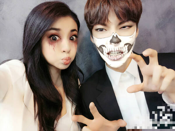 10月31日万圣节,安以轩微博也晒出自拍,她和韩国人气偶像安宰贤同框,“吓人”妆容也难掩她的姣好面容,皮肤白皙笑容甜美。