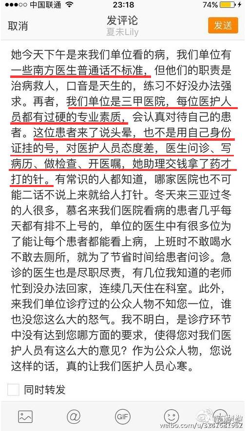 网友的态度一般是各站一边,有吐槽部分医生看病态度确实存在问题,也有网友质疑明明该排队看门诊,为何利用明星身份挤占急诊的名额。