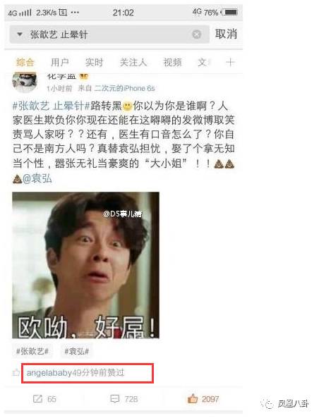 但张歆艺此次吐槽医生却受到前所未有的群嘲,孕妈Angelababy看八卦时手滑点赞了吐槽张歆艺的微博,还被网友称赞了……