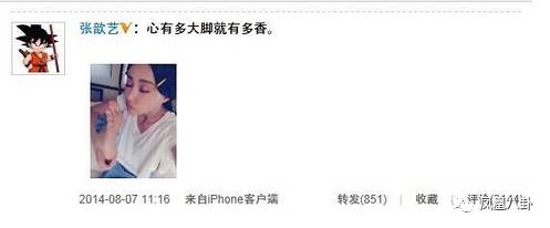 万万没想到张歆艺竟发了一条微博称自己脚香,真的很难不让人联想是不是暗讽杨幂脚臭……