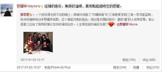 之后,有爱的一幕发生,黎耀祥转发评论道;“延续的缘分,无限的温暖,真有点超越时空的感觉”这无疑引起了一股回忆杀!