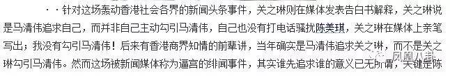 后来马、陈离婚事件的矛头直指关之琳,闹到关之琳在媒体发表自白书,亲笔写出:我没有勾引马清伟!