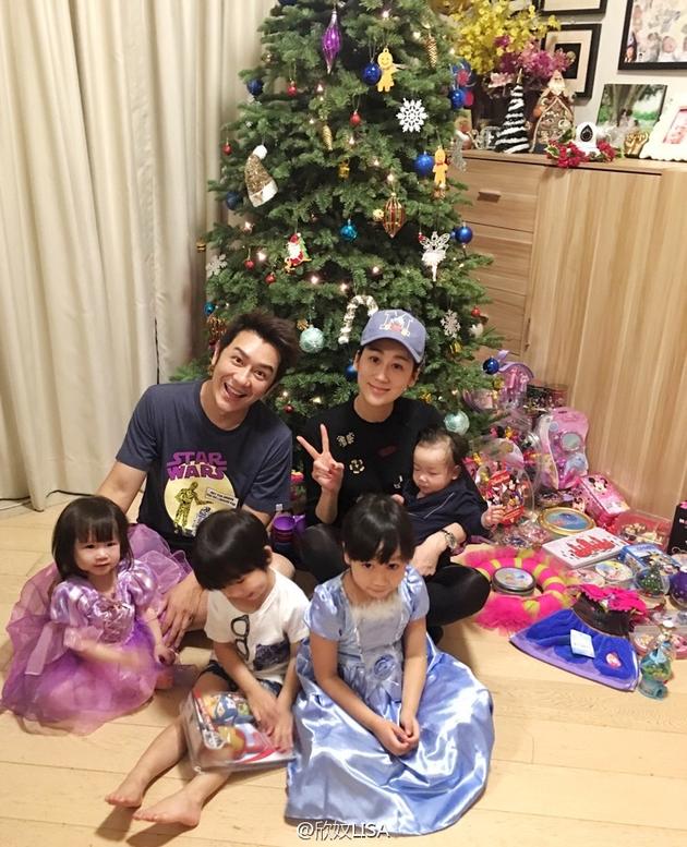 蒋丽莎5年剖腹产下4个孩子,她的怀中抱着小女儿熙妏,陈浩民则坐在身旁露出笑容,大女儿、二女儿和儿子席地而坐。房中的圣诞树挂满装饰物,旁边堆放着很多礼物,两个小姑娘穿着公主裙,虽然距离圣诞节还有半个多月时间,家中已有满满的节日气息。