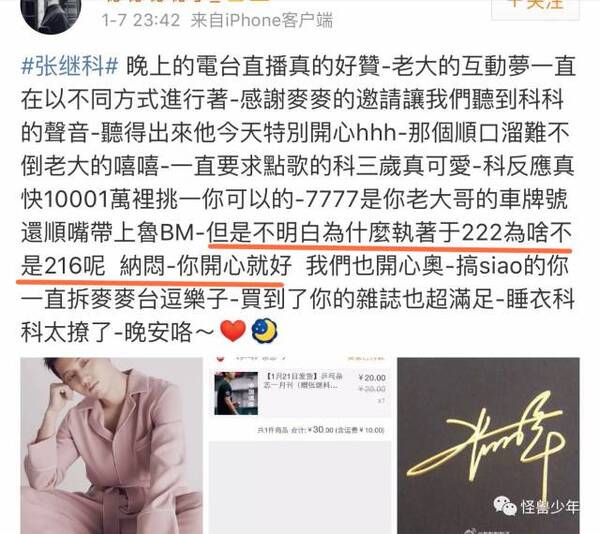 除了点歌,张继科在提到专辑时,还特意强调222这个数字,后来发现袁姗姗的生日正是2月22号。