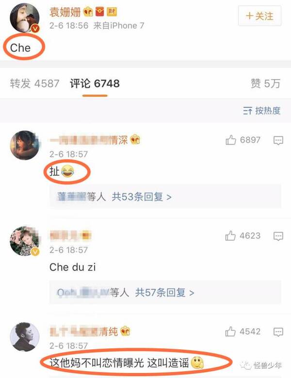 袁姗姗傍晚也在微博回应:Che