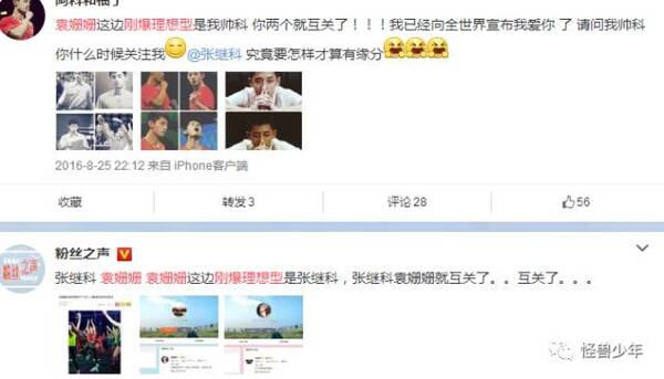 很快迷妹袁姗姗也回关了张继科