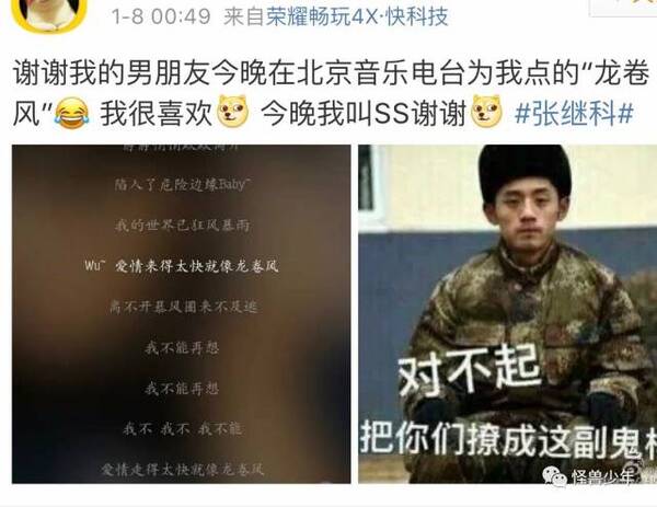 发专辑后,科科参加某电台活动,主持人问他想点什么歌,他说想点一首《龙卷风》送给SS