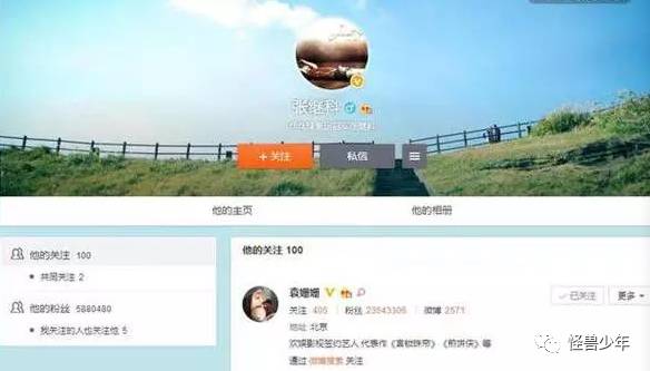接着张继科微博就关注了袁姗姗