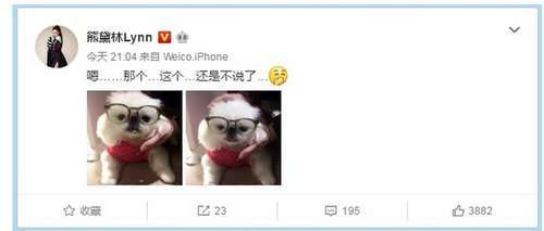 不过,熊黛林晚间在微博PO文,暧昧写下:“嗯……那个…这个…还是不说了…”还附一个捂嘴笑的表情符号。虽然她没有明说,但网友马上联想到孕事,热烈留言“没到时间不能说,懂了,祝福”、“怀孕了吧,恭喜你”、“男孩还是女孩“、“恭喜!顺利生出小鸡仔”。