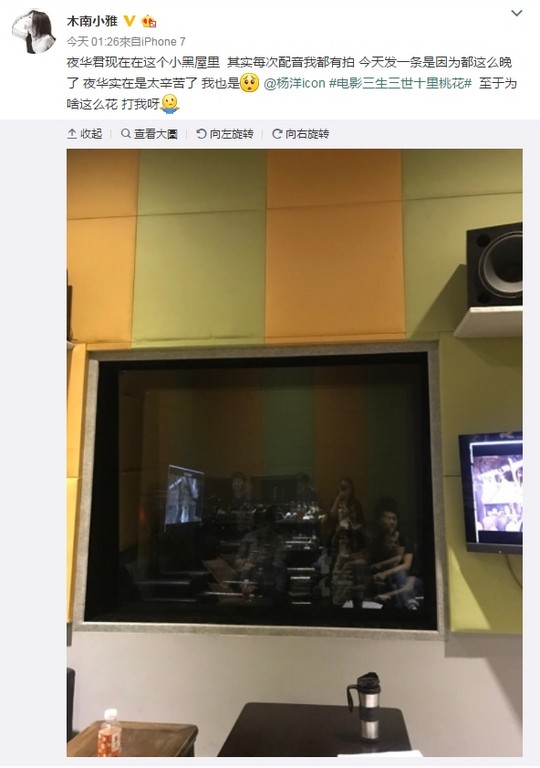 《三生三世》电影制片晒出杨洋录音到凌晨的照片。