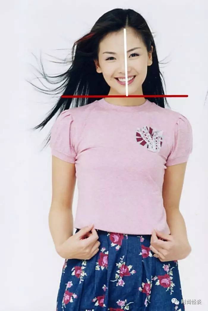 但分析起她的身材,其实属于非典型的厚身星人。肩线没有很宽,头身比均衡,事业线也没有很夸张。