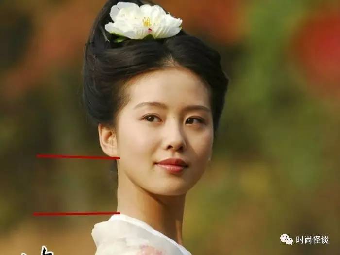 脖子长,一截埋在古装衣领里,剩下的一截还有那么长。