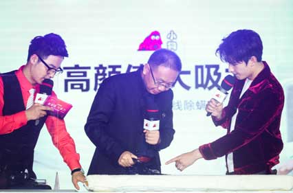 杨洋的粉丝见面会暨小狗电器新品发布会上,小狗电器代言人杨洋一袭盛装帅气亮相,尽显《三生三世十里桃花》中九重天太子夜华的盛世美颜,并与小狗电器创始人檀冲共同发布了新一代高颜值黑科技神器——D-610无线除螨仪。