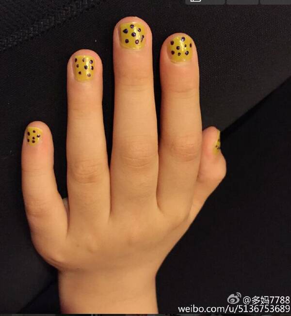 这张照片曾经因为多多穿着的是黑色小圆点,还一度被网友嫌弃呢。
