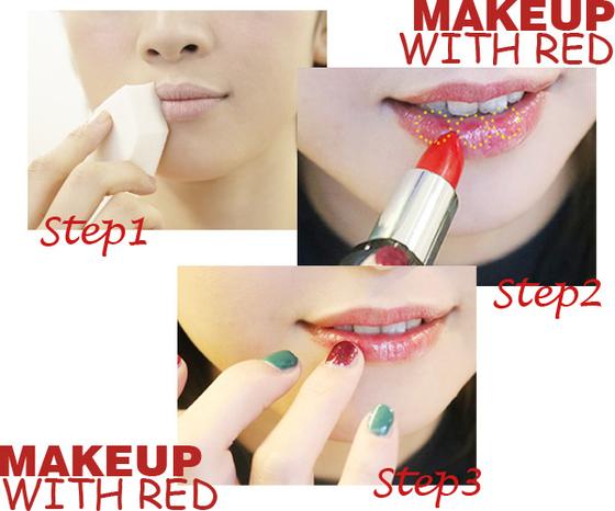 化妆步骤STEP1 先用遮瑕将唇纹变淡