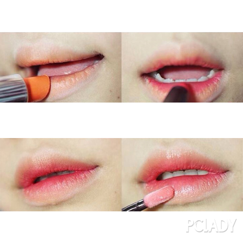 3、内侧涂抹颜色较深唇膏,轻轻点染,最后涂上唇蜜提亮。