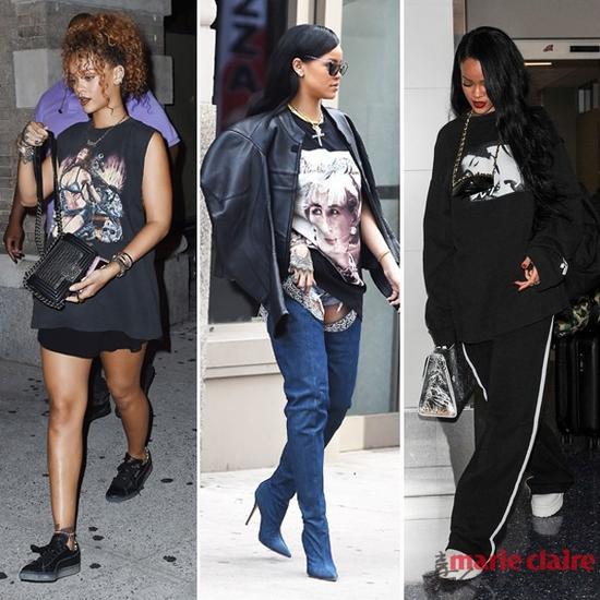 Rihanna虽然我们的Rihanna有时“不务正业”的总在充当设计师,不过时尚霸主的地位Rihanna还是数一数二的。今年Rihanna穿着最多的就是大大的人头像T恤,并且看上去很复古,最主要的是这些T恤很百搭,无论你搭配什么类型的衣服,都有一种美妙的混搭感。