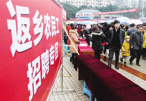 大量农民工回原籍就业,也对当地的新增就业岗位的扩张能力提出考验。如2017年春节后,四川省金堂县已经在各乡镇和工业区开了13场巡回招聘会,据各用工单位提供的数据,今年361个企业预计有近万个就业岗位,目前与企业签订了意向就业的有2960人。