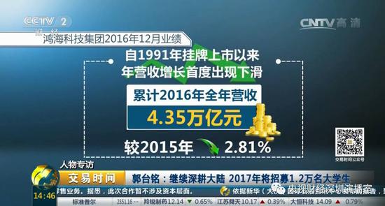 富士康是全世界规模最大的电子产品代工企业,是苹果iPhone的主要代工制造商。但是最近却传出苹果代工厂陷入无活可干的窘境。那么,富士康真的无活可干?富士康将在美国设厂的背后,又有哪些不为人知的商业逻辑?来看央视财经记者对富士康科技集团总裁郭台铭的专访。