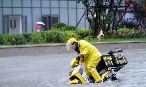 可一想到天气不好能接更多单子,还是坚持在风雨中奔行。