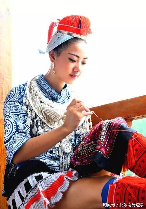 亻革家女装中的红缨有着一个美丽的传说“亻革家的祖先是一个英勇善战的将军,皇帝奖赏他一顶漂亮的红缨,而他却把御赐的红缨赠送给自己的女儿。于是,女儿又把红缨传给了自己的女儿。从此世世代代相传,亻革家女儿都要戴红缨帽。