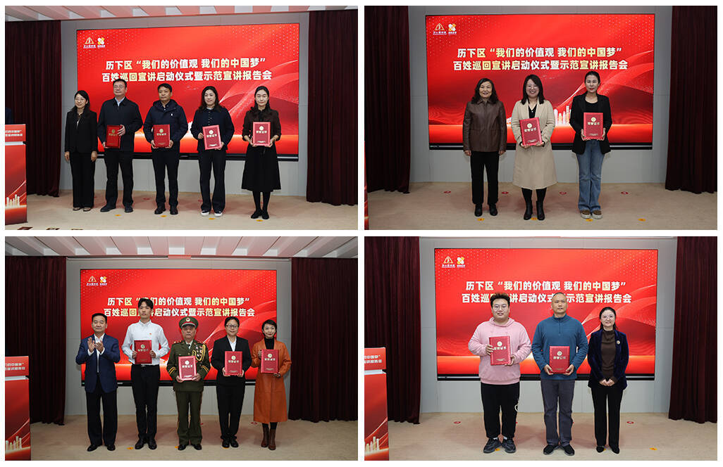 听身边人讲身边事,让自己人讲自己事。11月5日上午,济南市历下区“我们的价值观 我们的中国梦”百姓巡回宣讲启动仪式暨示范宣讲报告会举行。活动现场,为百姓宣讲大赛获奖选手颁奖,正式成立百姓宣讲团,同步启动巡回宣讲活动。历下区百姓巡回宣讲团将深入全区街道社区、中小学校、辖区企业等各领域开展巡回宣讲活动,把党的创新理论送进寻常百姓家,将身边人身边事传递到千家万户。