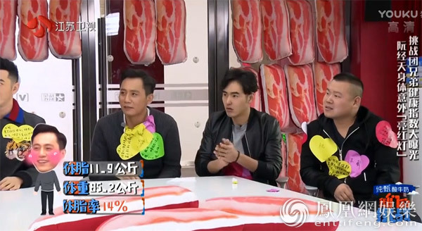 在公布六位挑战者的体脂时,虽然体脂超标最严重的是体型最为圆润的小岳岳,但被医生特别点名指出隐患的竟然另有他人!此人就是从节目开始就一直踊跃与医生互动,看起来对自己的身体非常有信心,且身材看起来颇为匀称的刘烨。医生解释说虽然小岳岳体脂最高,但他分布比较均匀,而刘烨的脂肪集中在了肚子部分,使他的腰围直达100cm,这可让一直以为他身材很好的兄弟团不甘心了,五人一哄而上亲手感受了一下百厘米腰围的绝佳手感。专业医生警告道“裤带越长,寿命越短”,所以如果脂肪都堆积在肚子上是一件很是危险的事情。